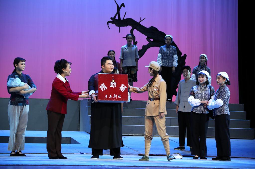 众多师生共同演绎,我校校友、北京饕戏戏剧文化有限公司总经理彭忠,担任了该剧编剧、作曲、导演的工作。此剧取材豫剧名家常香玉抗美援朝捐飞机的事迹,艺术上立足民族,融汇歌剧、戏曲、流行音乐等元素,既有新创作的咏叹调优美感人,又有原汁原味豫剧常派唱腔精典再现。舞台呈现剧中有戏、戏中套剧,具有较强的可听性、可视性,意在探索外来音乐剧民族化、多元化的发展。