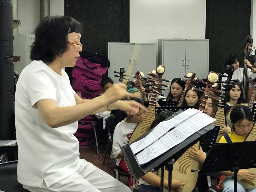 民族乐团排练现场开始了紧张的工作。排练中洪侠对师生们演奏的民族管弦乐作品《我的祖国》、《太阳颂》第一乐章• 踏江•进行了分析讲解,并分别从声部基础训练、演奏法、和声音效等方面进行了指导和练习。洪侠严谨认真的工作态度、细腻高超的排练技巧和柔美温婉的语言表述给在场领导和师生们留下了深刻印象,排练效果显著提高。
