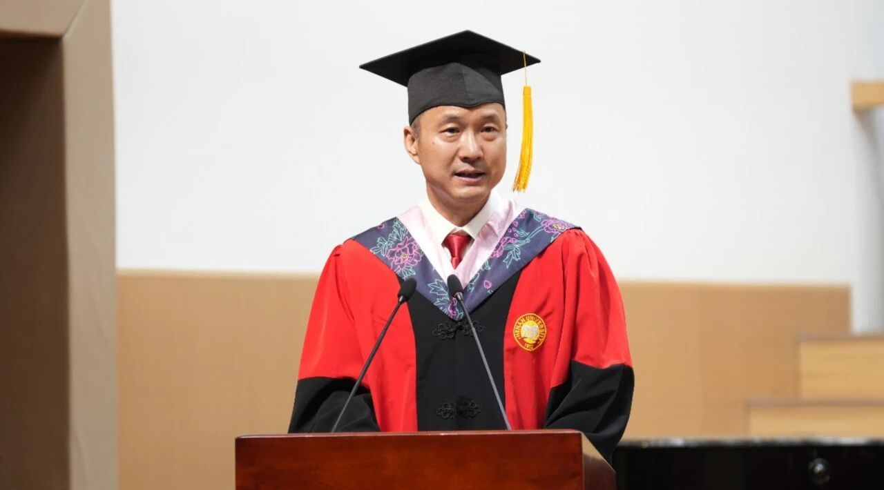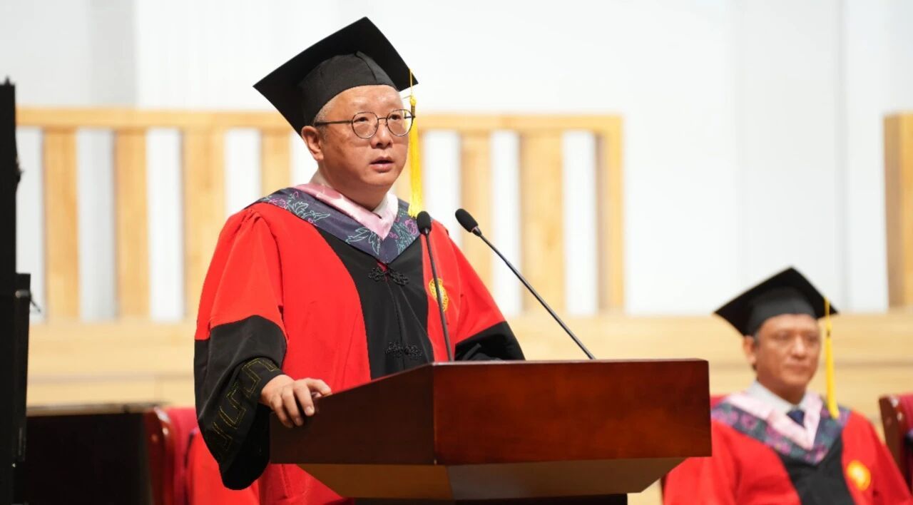 导师代表院钢琴系主任潘伟以师者的智慧与慈爱,勉励同学们坚守音乐初心,在各自专业领域深耕细作、开拓创新。他的寄语中既有传道授业的谆谆教诲,更饱含着对学生们未来发展的美好祝愿。
