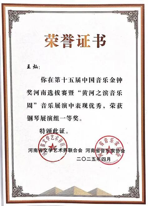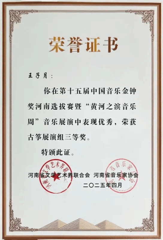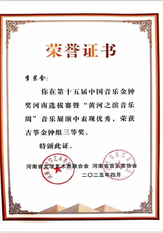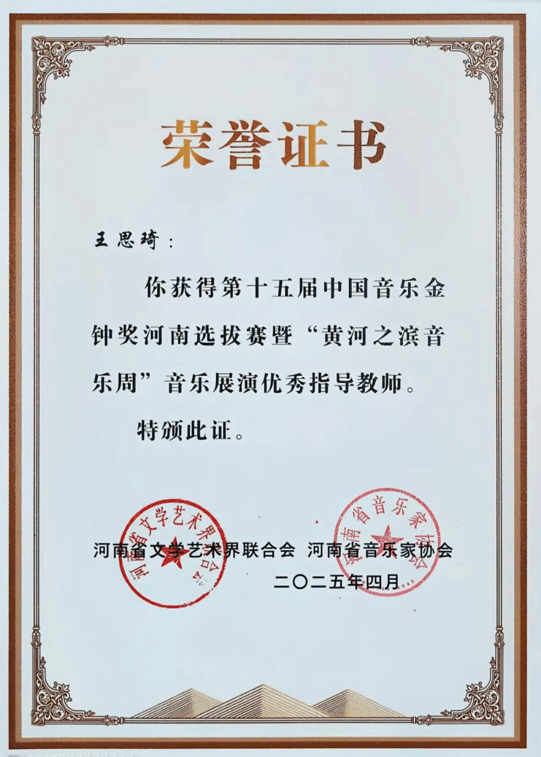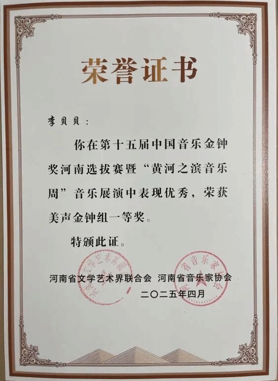 2025年4月24日,由河南省文学艺术界联合会、河南省音乐家协会共同主办的第十五届中国音乐金钟奖河南选拔赛暨“黄河之滨音乐周”在河南周口、洛阳圆满落下帷幕。此次选拔赛汇聚了全省各地的优秀人才,为观众们带来了一场场精彩绝伦的音乐盛宴。