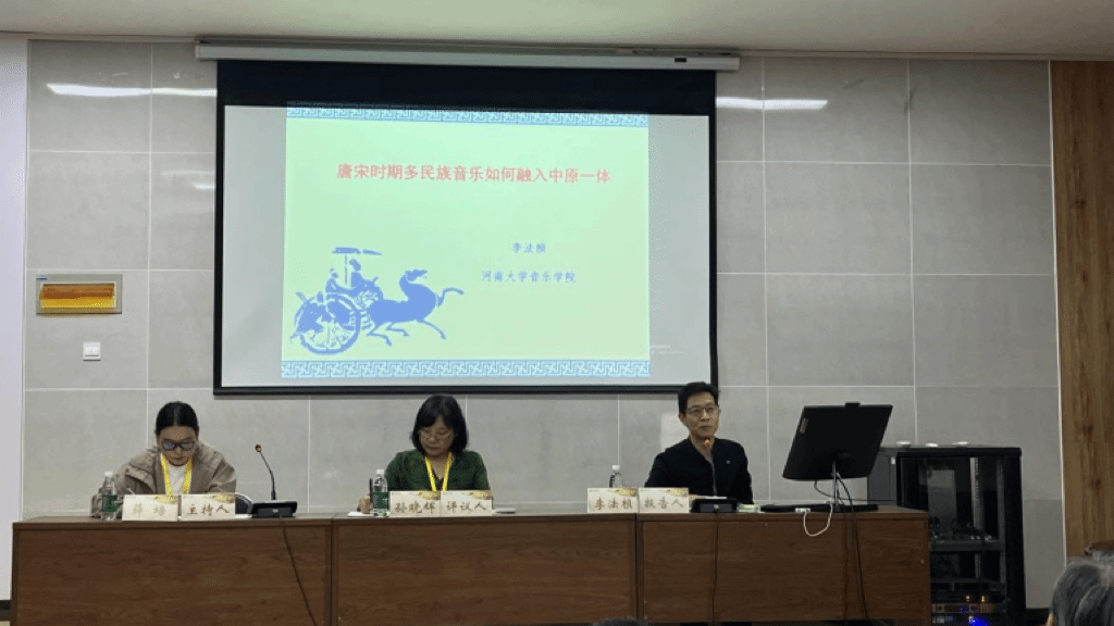 李法桢副教授的发言题目为《唐宋时期多民族音乐如何融入中原一体》,主要包括三部分内容。第一部分对“多元”与“一体”的概念内涵进行阐释。所谓“多元”,在民族关系上指黄河流域音乐文化源自域内外多个民族,每一民族的音乐成分为“一元”;在文化类型上涵盖上游游牧文化、中下游农耕文化与三角洲海洋文化;“多元”的第三重含义则体现为凝结于具体音乐成果中的多重智慧,其中特别强调“红色音乐”作为黄河流域极具激情的一元。“一体”首先指以“汉乐”为主体,即融合汉族与诸少数民族乃至外来音乐成分的混生性综合体;其次指黄河流域音乐文化整体;第三指如“花儿”之类的音乐共同体;第四指具体音乐成果的个体形态。第二部分探讨唐宋时期胡乐融入中原一体的三条途径:“变胡为汉”,即少数民族通过改变民族属性实现融合;“胡乐入礼”,指胡乐汇入汉族礼乐体系,登上更广阔的舞台;“仿汉制礼”,即少数民族政权仿效汉人制礼作乐,加强政权体制建设。第三部分论述多民族音乐融入中原一体的三种方式:融入“汉乐”主体,部分少数民族音乐脱离原属性汇入汉乐;渗入“个体”,即胡乐成分融入黄河流域具体音乐形态;加入“整体”并形成“共同体”,指多民族音乐加入汉乐整体,共同构建音乐共同体。他认为,唐宋时期黄河流域的音乐交流体现了“你中有我、我中有你”的融合态势,并呈现出向高层次统一发展的趋势,同时揭示出“多元一体”格局从文化运行机制演变为结构性文化生长能力的内在逻辑。