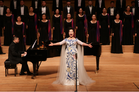 合唱团优美的歌声和观众的伴唱中,一曲深情大气的《我的祖国》拉开了“在希望的田野上”郑慧玲独唱音乐会的帷幕。