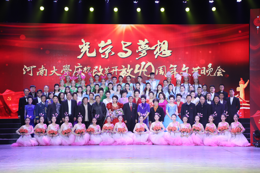 共同承办的“光荣与梦想”——庆祝改革开放40周年文艺晚会在明伦校区大礼堂隆重上演。校领导宋纯鹏、张宝明、孙君健、孙功奇,总会计师韩守富,部分退休老领导关爱和、王凌、王发曾,郑州大学、开封大学等兄弟院校以及新乡市、开封市相关领导,全校师生代表、校友代表等欢聚一堂,共同回顾改革开放光辉历程,共同展望新时代美好蓝图。