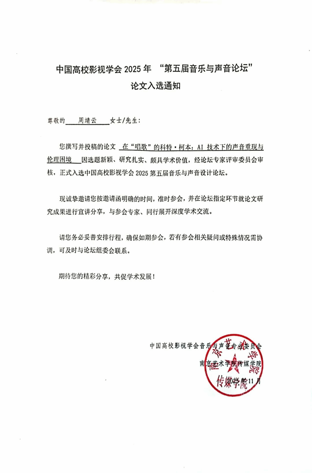 等73所院校及科研机构,参会总人数逾两百人,论坛投稿数总计123篇,创历届新高。bilibili下载学术型研究生周靖云的论文成功入选本次会议(音乐与声音学术论坛五),并进行了现场宣讲。