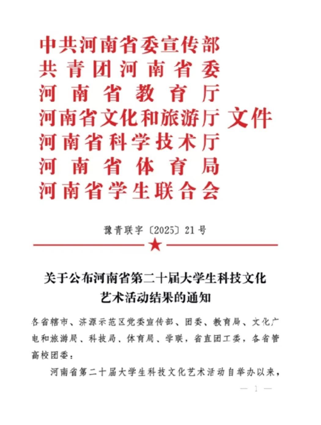 多位指导教师荣获“河南省第二十届大学生科技文化艺术节优秀指导教师”称号。