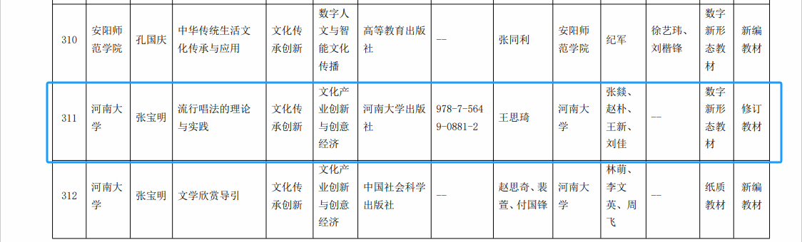 2月16日,教育厅公布河南省普通高等教育“十四五”规划教材立项名单:王思琦教授编著的《流行唱法的理论与实践》和樊霞副教授编撰的《中国经典古诗艺术歌曲赏析与演唱》获批立项。