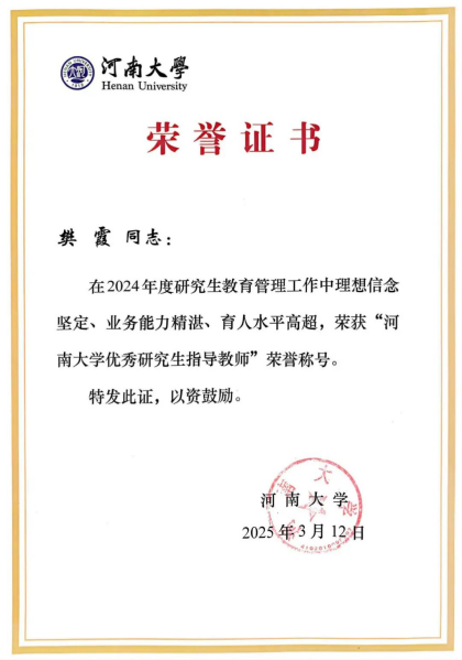 陈文革教授领衔的研究生导师团队荣获“优秀研究生导师团队”称号,樊霞副教授获评“优秀研究生指导老师”。