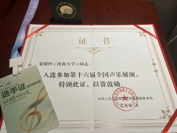 在第十六届全国声乐展演,学院青年教师朱绮恒入围流行音乐组,并参加现场展演。比赛中先后演唱了《逝去的爱》、《河流》两首不同曲风的流行音乐作品,获得了评委的高度认可与青睐。