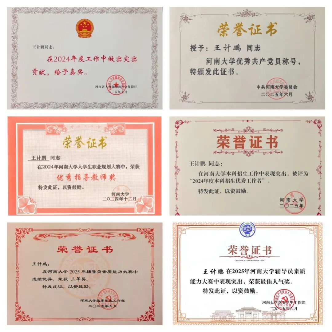 在王计鹏的精心指导与严格要求下,他所带的2023级实现了学业、素质、创新的全面突破。从2025年5月的校级二等奖,到6月的一等奖,再到9月荣获中国国际大学生创新大赛河南赛区三等奖,他指导的费雪儿、冯笑涵同学实现了赛事成绩的“三级跳”,极大地提升了学生的创新精神和实践能力;在他的精心带领下,整个2023级展现出积极向上、团结奋进的良好风貌,荣获2024-2025学年bilibili下载