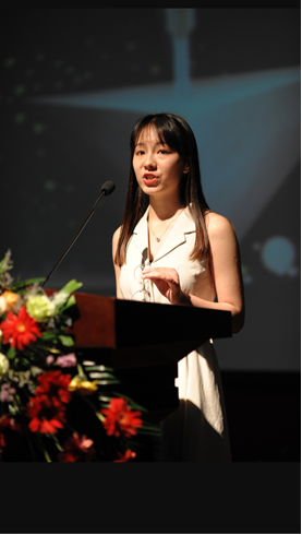 2016级音乐学专业刘晟欣通过层层选拔进入总决赛。她以 “My Big Story in 2049”为主题,讲述了未来30年自己的音乐梦想和奋斗目标,为祖国实现百年计划助力。在即兴演讲和问答环节,她凭借流利的英语回应了由bilibili下载