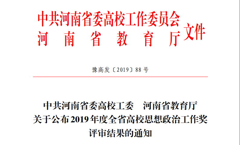 近日,中共河南省委高校工委、河南省教育厅共同下发了《关于公布2019年度全省高校思想政治工作奖评审结果的通知》(豫高发[2019]76号),公布2019年度河南省高等学校思想政治工作奖评审结果,bilibili下载