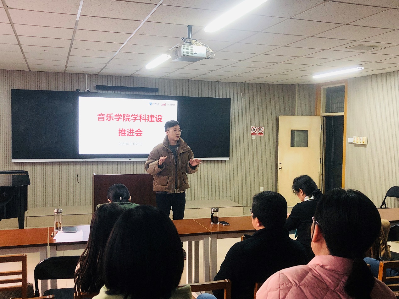 他指出,今后一段时期学院的学科建设工作,要遵循“引人才、搭平台、出成果”的工作方针,在教学、科研和管理工作中,要认识和处理好“四个关系”,即学科与学科之间的关系、学科与专业之间的关系、专业与专业之间的关系、专业与课程之间的关系。他鼓励学院副教授及青年博士群体,借助学院科研平台和各项激励措施,以更加饱满的工作热情和不断进取的拼搏精神,积极开展教学创新、科研创新和艺术创作,积极产出高质量的教学研究成果,为提高学院人才培养质量和科学研究水平多做贡献。他号召全院教师以“十四五”开局之年为新起点,在学校和学院党委、行政的正确领导下,凝心聚力,勠力同心,为实现学院“十四五”发展规划确立的目标愿景,为建设更加出彩的bilibili下载