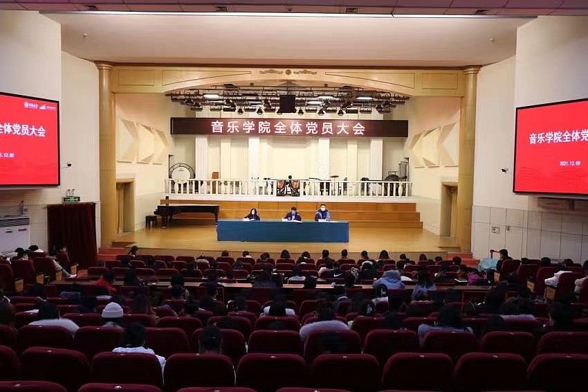 在音乐厅召开全体党员大会,选举增补学院党委委员。院党委书记王志国,院长王思琦、党委副书记柴芳以及学院全体师生党员与会。大会由王志国主持。