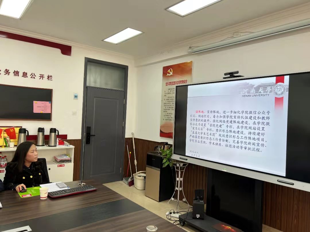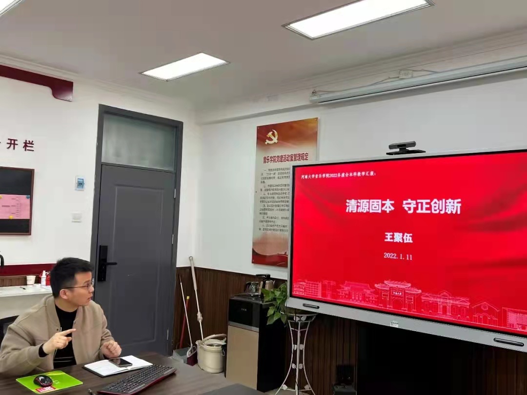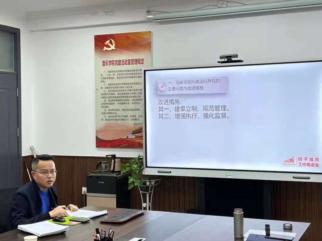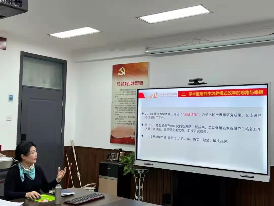 院党委副书记柴芳围绕学院党建思政工作,分别就探索和完善“党建+音乐”党建工作特色模式巩固深化“歌声中的党史”党建工作品牌;通过加强师德师风建设、建强教师党员队伍、增强党内外联谊等形式推动教师思政教育;通过试行本科生“双导师”制,建立“本科生成长档案”,促进学风建设等加强学生思政教育;通过建立支部书记、辅导员工作室加强干部队伍建设等方面提出了相应的工作思路与举措。