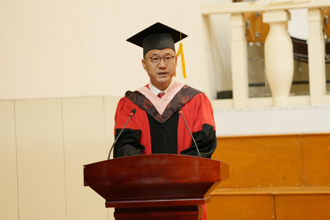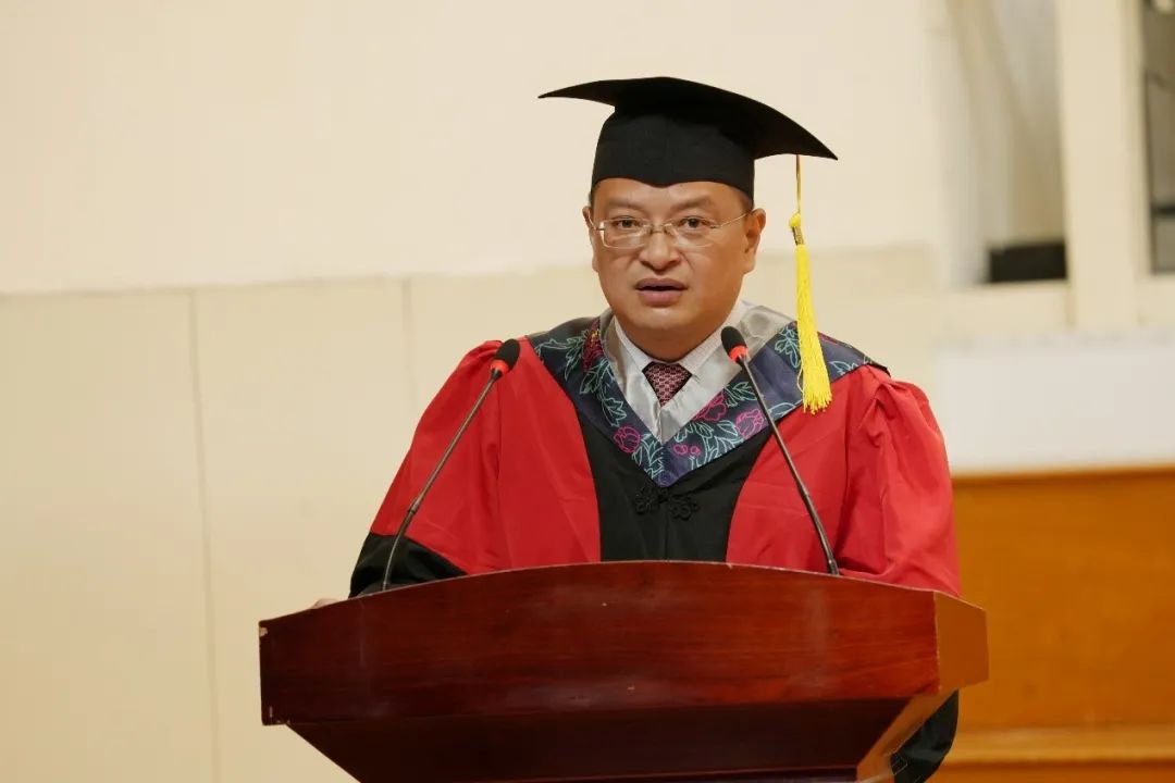 声歌系副教授张宗伟老师代表全体教师表达了对毕业生的依依不舍之情,勉励全体毕业生要做“使命的担当者、心之向往的勇敢者、自我雕琢的直面者、做充满好奇的学习者”。言语有意,枝叶关情。党委书记王志国向毕业生表示祝贺,并向辛勤培育他们成才的老师、家长表示衷心的感谢!他与大家分享了一本书、一首歌、一封信和一段往事。一本书是《老人与海》,一首歌是《孤勇者》,一封信是《不被大风吹跑》,一段往事是bilibili下载