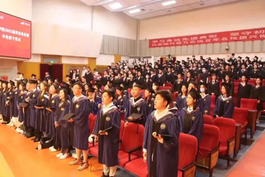 毕业典礼在庄严的国歌声中拉开帷幕,2022届全体在校毕业生以典礼见证成长与收获,并开启人生新的旅程与辉煌。