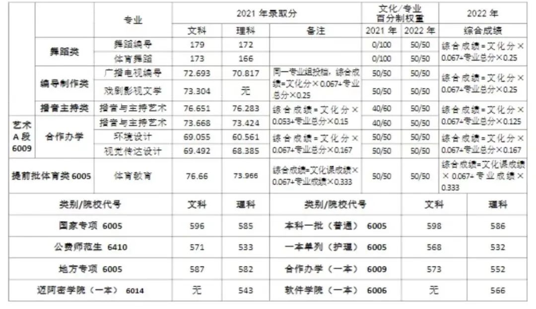 我校艺术类各专业采用考生所在省份对应类别统一考试成绩,考生文化成绩和专业成绩均应达到各省相应批次的最低录取控制分数线,在各省级招生主管部门按各省投档原则投档到我校的考生中,依据“志愿优先”的原则,按照文化成绩和专业成绩各占50%的百分制权重计算考生综合成绩,从高分到低分择优录取。