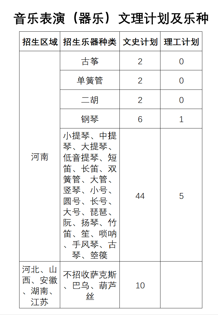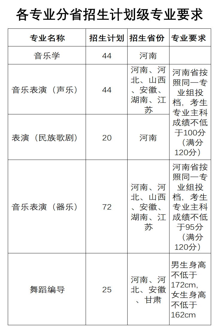主要培养德、智、体、美、劳全面发展,具有较高政治理论素养、文化素养和较强音乐表演才能,系统掌握音乐表演、音乐创作的基本理论和基础知识,具有熟练的音乐表演基本技能,能够在文艺团体、艺术院校和社会文化机构等单位从事音乐表演(声乐演唱、器乐演奏、合唱指挥等)、音乐创作(作曲等)、教学和文艺普及工作的高素质、应用型音乐人才。学制4年,授予艺术学学士学位。