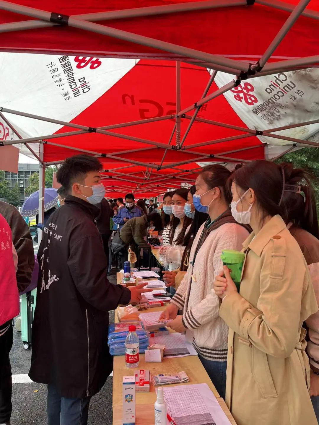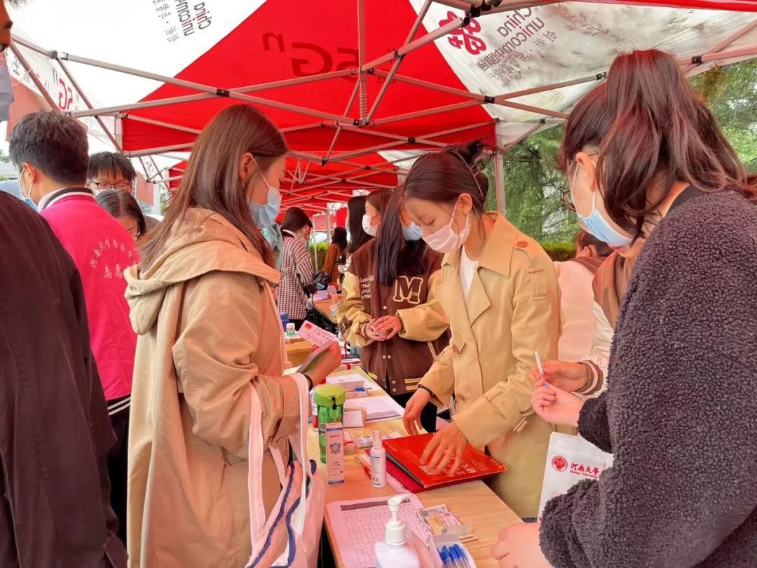 因受冷空气影响,近几日开封气温骤降,阴雨连绵。报到现场,志愿者们分工明确,热情指引新生办理报到手续,现场报到登记、资料审核、物资发放等流程简便高效、井然有序。由于疫情防控要求,新生随行人员不能⼊校,志愿者们实施轮班制,冒雨帮助新生运送行李。学院为学生们精心准备了爱心袋、口罩、消毒液等物品,体现了人文关怀。