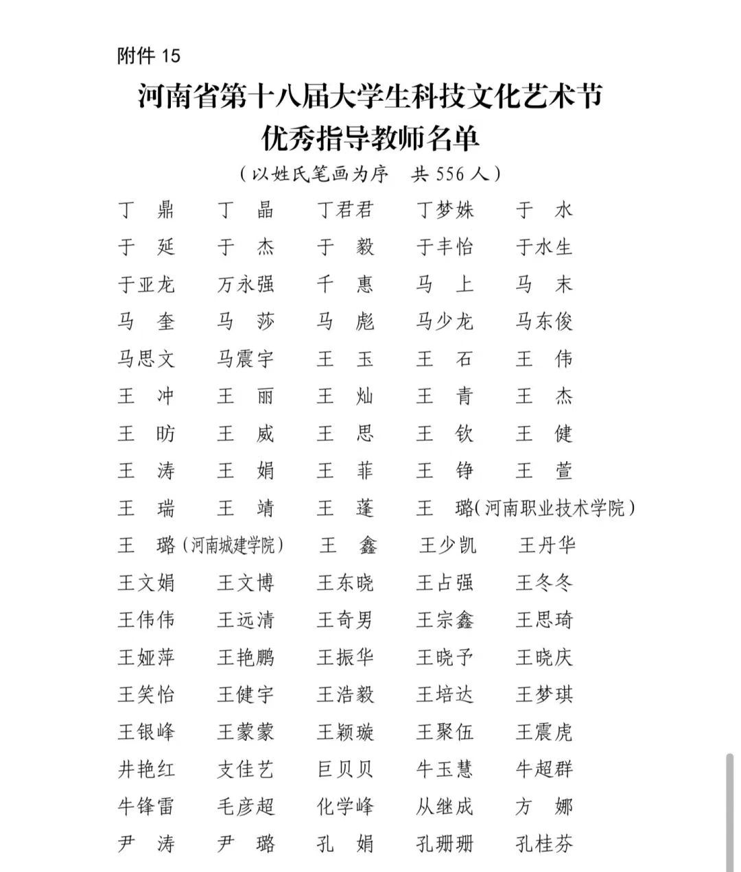 获得河南省第十八届大学生科技文化艺术节优秀指导教师名单如下: