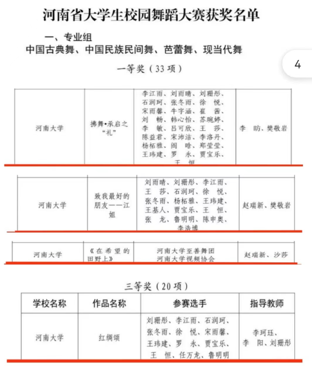 《拂舞·承启之礼》《致我最好的朋友——江姐》《在希望的田野上》荣获一等奖,《红绸颂》荣获三等奖。