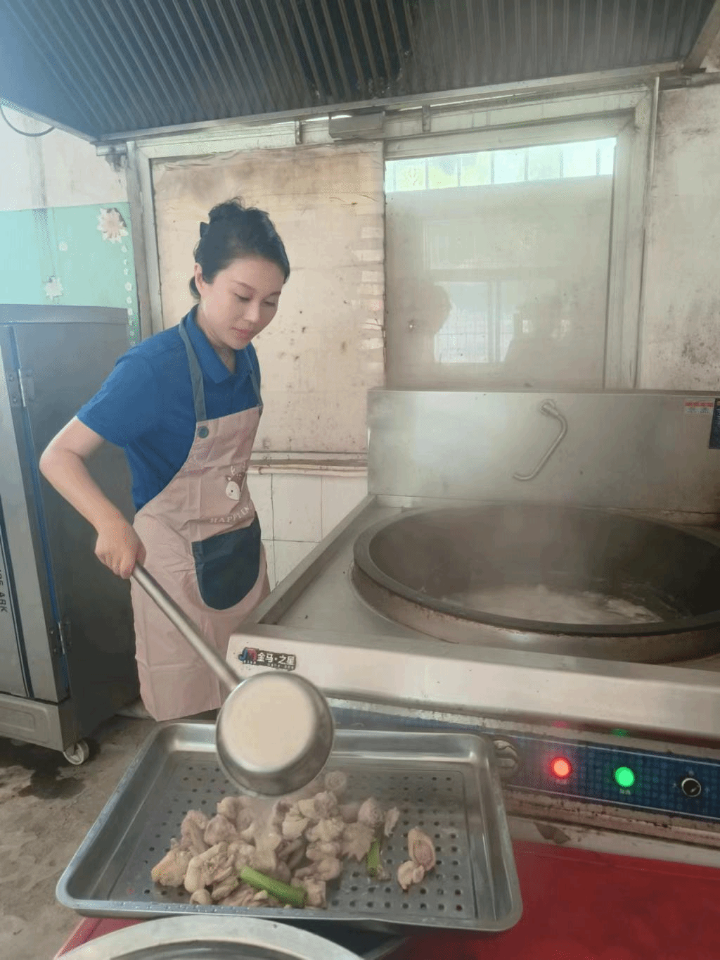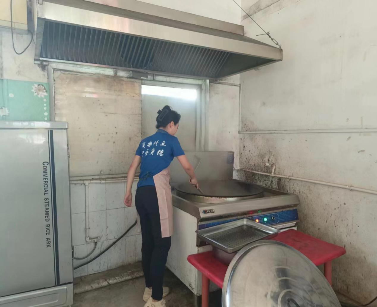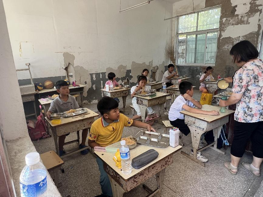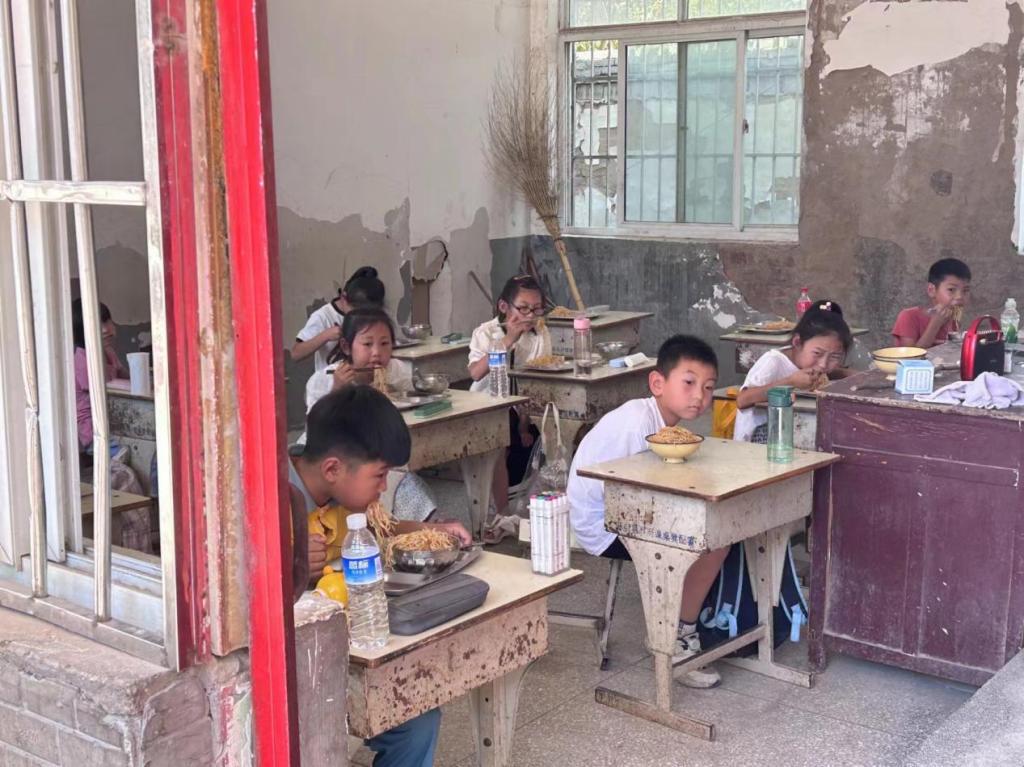 “蒲公英”支教团的志愿者们为老饭店小学的孩子们做饭、发饭