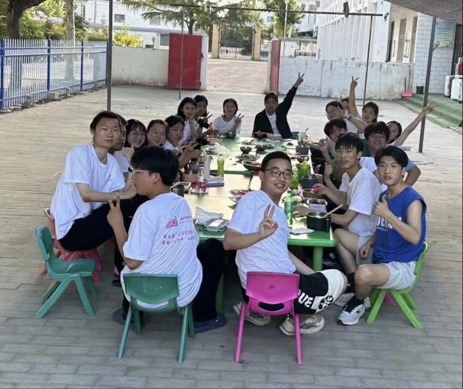 志愿者们其乐融融的享受用晚餐