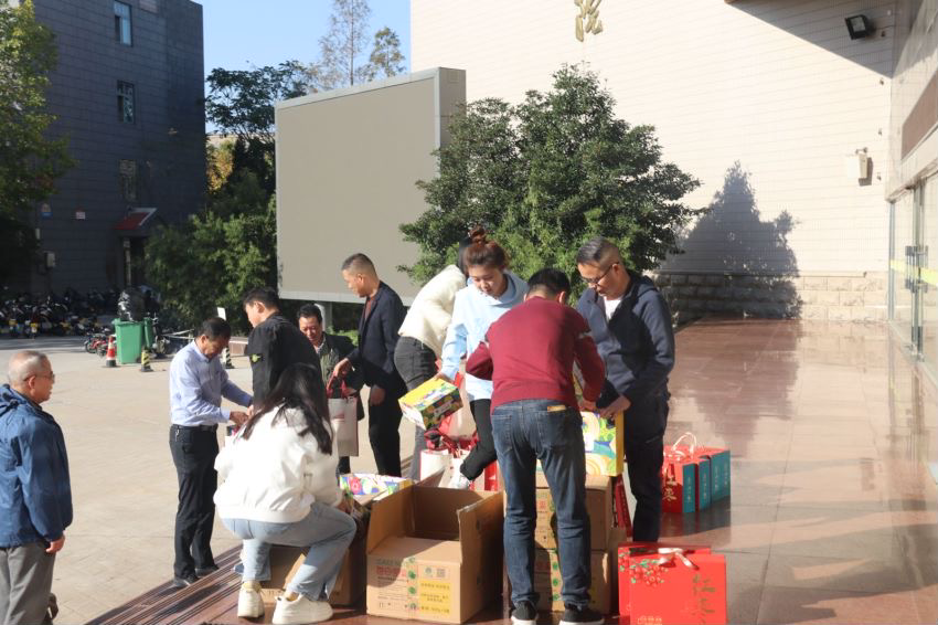 健步走活动结束后,学院送出了为退休老教师精心准备的大礼包,表达对他们关心与慰问。