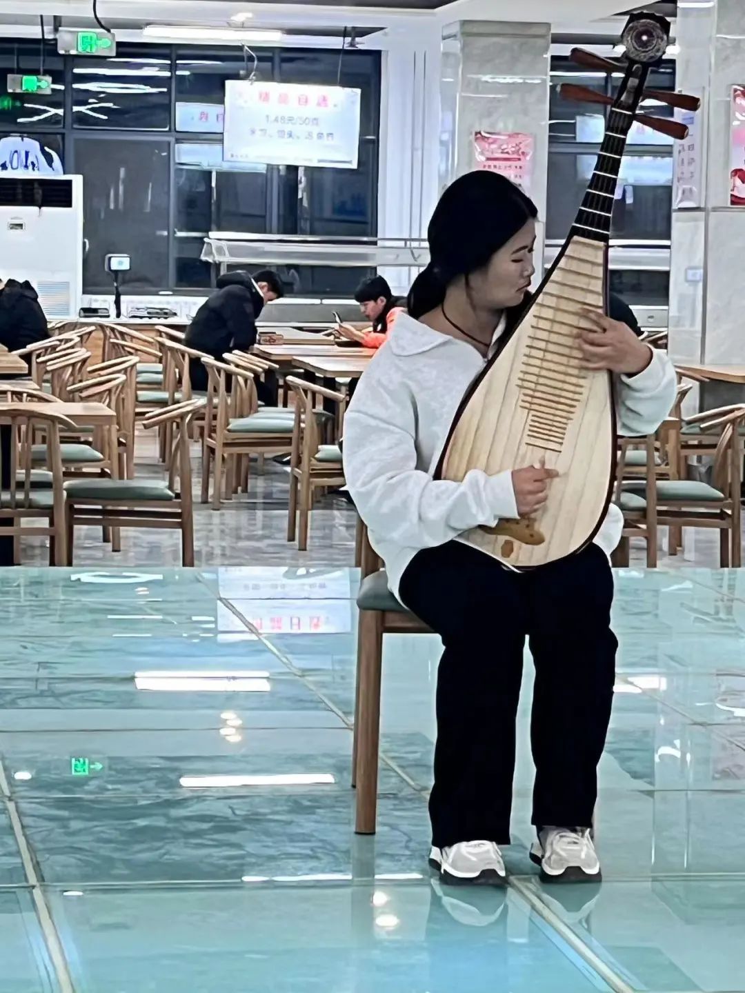 悠扬的旋律使同学们思绪万千,也将中心食堂的气氛达到了极致。在这里,我们面对面感受音乐的艺术,大家或听着不熟悉的歌曲,或哼着熟悉的旋律,一切都在为音乐而赞。