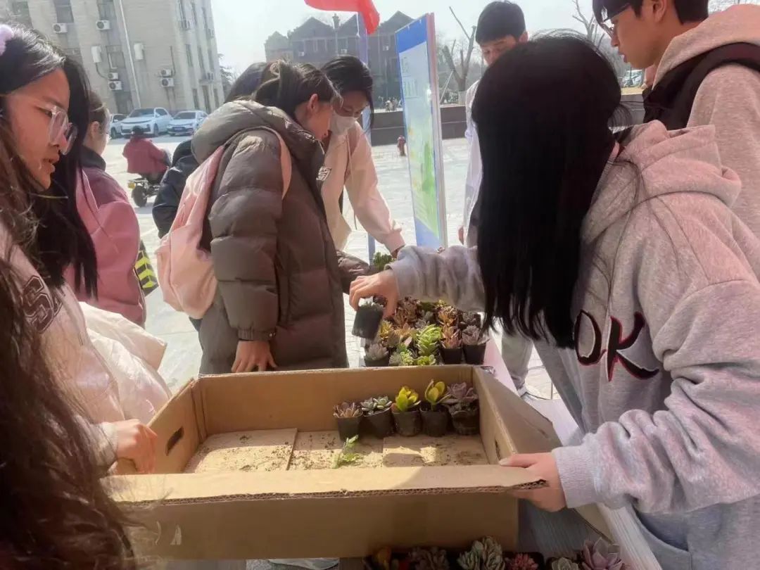 的志愿者们积极向校内同学进行宣传,活动现场,大家拿着各式各样的旧物,在志愿者们的引导下兑换绿植。同学们用实际行动切实贯彻了新发展理念,为生态环境保护贡献自己的一份力。