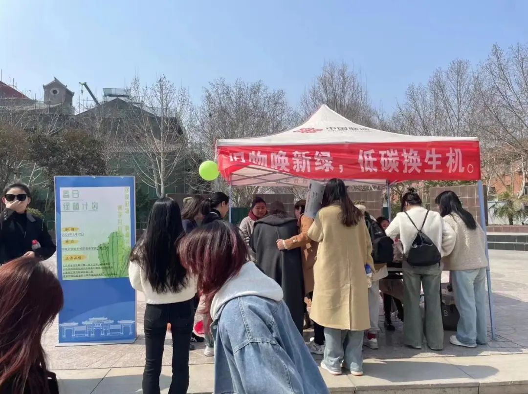 组织开展了以“旧物换新绿,低碳换生机”为主题的植树节志愿活动。为了美化校园环境,提高大家爱护花草树木的生态意识,同时进一步传承雷锋精神,发扬“奉献、友爱、互助、进步”的中国青年志愿者精神。