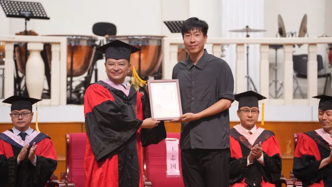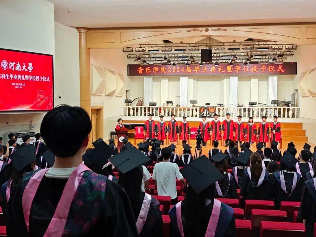 副院长王聚伍宣读 2024 届本科毕业生学士学位授予决定,授予普通本科毕业生:音乐学专业严浩等39位同学艺术学学士学位;音乐表演专业邱雅楠等99位同学艺术学学士学位;舞蹈编导专业卢怡凡等19位同学艺术学学士学位;表演专业任宇航等20位同学艺术学学士学位。共计177人。