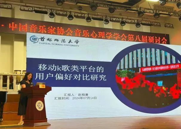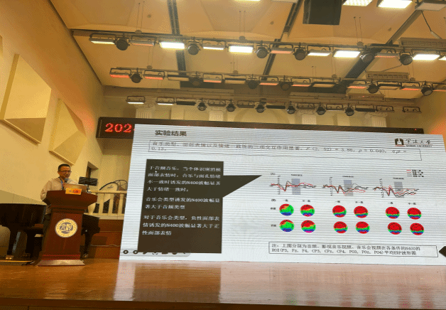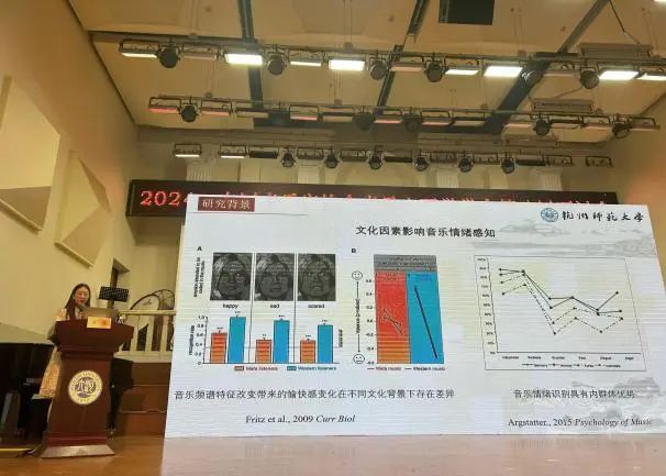 博士生吴迪代表其所在的杭州师范大学研究团队,介绍了通过维度模型和离散模型评估音乐情绪,发现维度模型更适用于描述中等程度情绪,而熟悉度能增强情绪感知。该研究提出要建立中国民族情绪音乐库,该音乐库对跨文化音乐情绪研究具有重要价值。