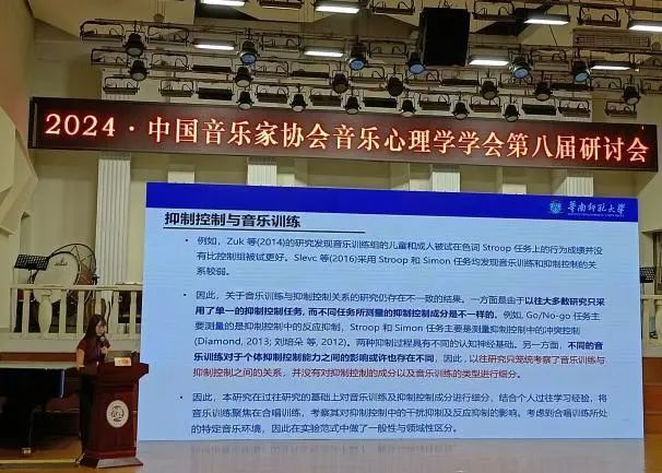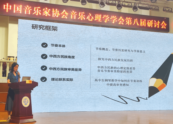 硕士生陈茵的发言研究了潮州弦诗乐中特性音与常用乐汇的感知,她发现文化背景和音乐训练影响潮州音乐风格判断,经验丰富的被试对音高变化更敏感。该研究揭示了内隐知识在音乐感知中的作用。