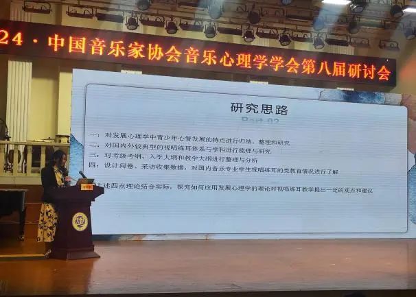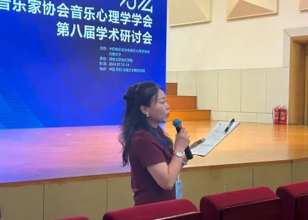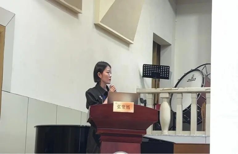 琼台师范学院博士生彭微芬的发言探讨了音乐学(师范类)专业中音乐聆听与审美体验能力的重要性。她强调,通过综合教学提升学生的感知认知、审美情感和跨文化理解能力,以促进其全球视野和跨文化交流能力。
