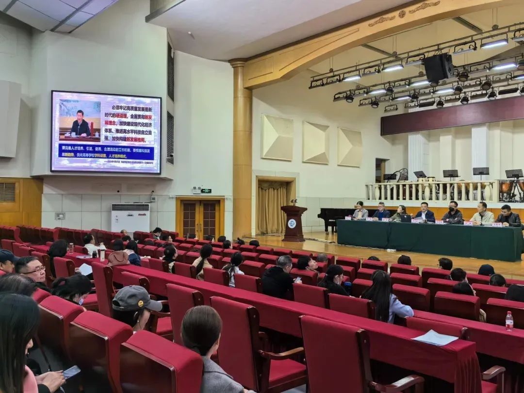 在音乐厅召开 2024 年春季学期全体教职工大会,部署安排学期工作。院领导班子成员及全体教职工参加会议。主持人王志国传达了学校工作会议精神,学校发展的长远目标和近期目标,他要求学院全体师生员工全面贯彻落实学校工作会议精神,摒弃惯性、转变观念、解放思想、务实重干,落实学校目标责任制,围绕学院学科和学位点建设等重点工作,以发展赢得尊严,推动全院工作在新的一年再上新台阶。院长王思琦在讲话中指出,面对新形势、新问题、新要求,全体教职工要尽快转变思想、扛牢责任、压实作风,将压力转换为动力,要端正态度,立足本职工作,做好科研教学等发展规划,将个人提升融入学院建设发展,为学院核心目标的实现贡献力量。