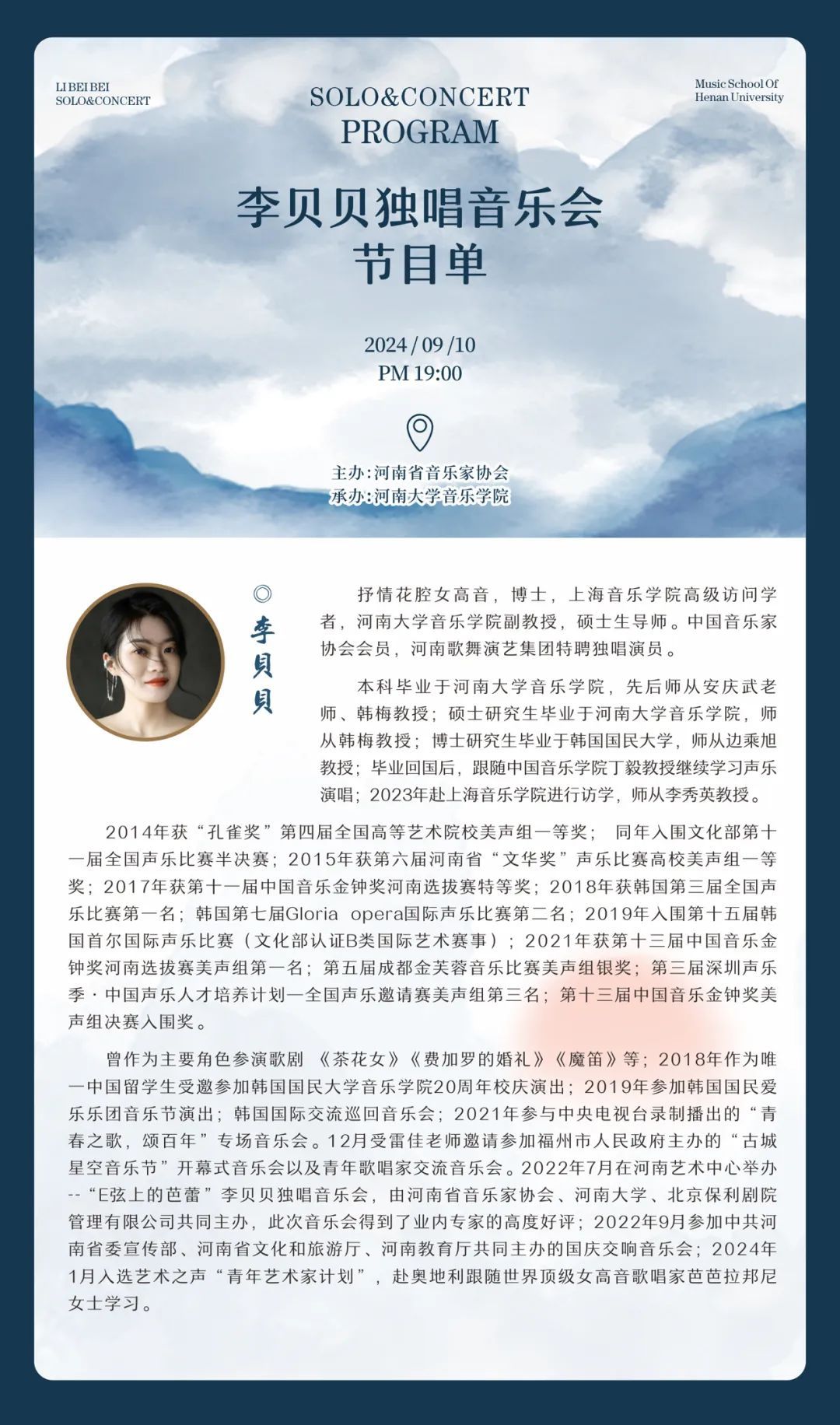预告|李贝贝独唱音乐会将于9月10日晚7点拉开帷幕!