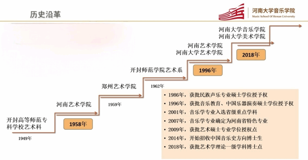 。近年来,学院先后被确定为教育部体育与艺术师资培养培训基地、国家级人才培养模式创新实验区、河南省艺术实验教学示范中心、中央与地方财政共建艺术实训中心实验基地。2016年,学院被教育部、文化部、财政部确定为首批中华优秀传统文化(豫剧)传承基地。2018年,获批艺术学理论一级学科博士学位授予权,实现了河南省艺术门类博士点零的突破。作为一所具有深厚艺术底蕴的高等学府,建院67年来,学院一直致力于音乐教育和美育工作的推广与普及,为国家培养了培养出了武秀之、吕岱生、王寿庭、赵为民、苗建华、方建军、韩启超、小香玉、陈淑敏等一大批名学者、艺术家和优秀人才。