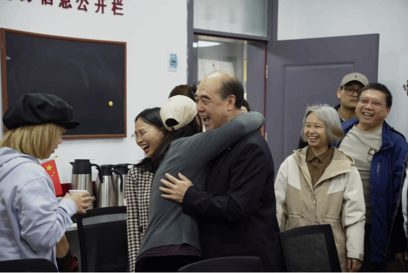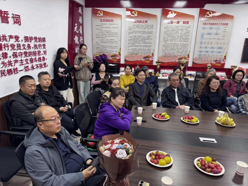 各位校友依次汇报了自己的情况。最后,老师和校友们在新艺术楼前合影留念。