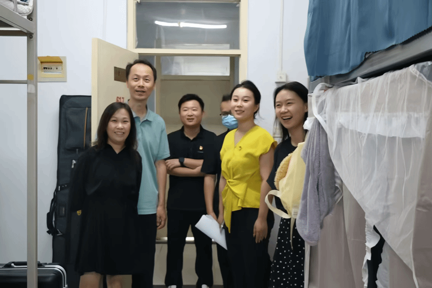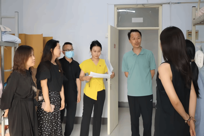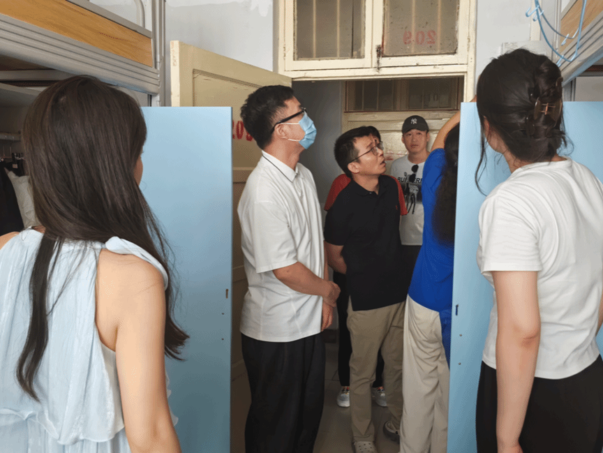 在了解住宿环境、新生情况后,领导们认真了解了新生生活的每个细节,从宿舍空调、热水到饮食习惯,还特地查看了宿舍公用饮水机、吹风机等设施。嘱咐新生们要树立安全意识,防火、防盗、防诈骗,及时排查安全隐患,做自己的安全“第一责任人”。同学们表示感谢老师们的关心关爱,会做好个人管理,珍惜大学时光,不负青春,不负韶华,不负时代。领导和老师们的关怀,让学生暖心;同学们的懂事与配合,也让老师放心。