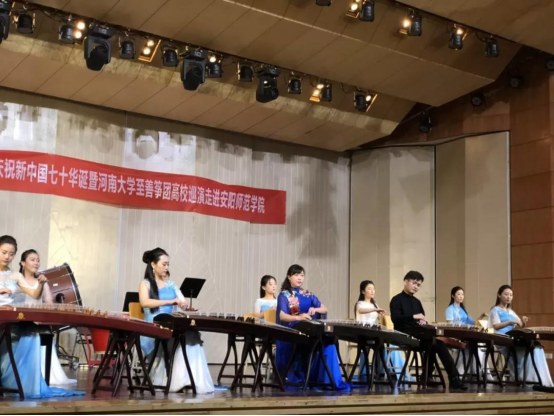 古筝专业把至善筝团作为教、学、演的师生综合实践平台,积极参与省教育厅、学校高层次文艺演出,举办系列音乐会(庆祝改革开放70周年音乐会、庆祝中国共产党成立100周年音乐会等),承担2019年河南省教育厅高雅艺术进校园活动,在校内举办“国乐之约”校园公开课,走进汉学院、国际教育学院等,为留学生开设专场艺术课堂,给学生提供接近舞台,展示自我的机会。将课堂内容在舞台上呈现,检验教学效果。在舞台上检验能力,反哺教学,将教学中的理论知识与舞台实践相结合,最大限度地挖掘成员们艺术潜能,提高自身艺术素养。近年来,bilibili下载