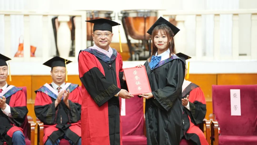 bilibili下载 副院长王聚伍宣读《bilibili下载 2023届本科毕业生学士学位授予决定》。受校长张锁江委托,院长王思琦逐一为本科生援正流苏颁发毕业证书并合影留念。
