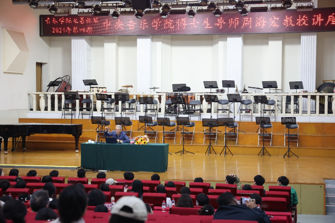 周海宏教授的讲座分为美育的功能与意义、音乐审美的本质、迈向新时代音乐美育的路径等三个篇章。他结合国民日常生活中真实存在的诸多现象,着重强调了个人、群体和国民具备感性素质的重要性。他从“音乐怎么听”和“艺术有什么用”两个问题入手,围绕音乐美学基本原理、音乐表现的机制以及音乐对人类生活的意义,深入浅出地讲解了“音乐何需懂”“音乐理解何需正确”“联觉”等音乐心理理论,用娓娓道来的叙述、幽默风趣的语言、生动形象的事例和精心选取的音乐片段,阐释了音乐美学的基本原理,诠释了艺术教育的目的和意义。