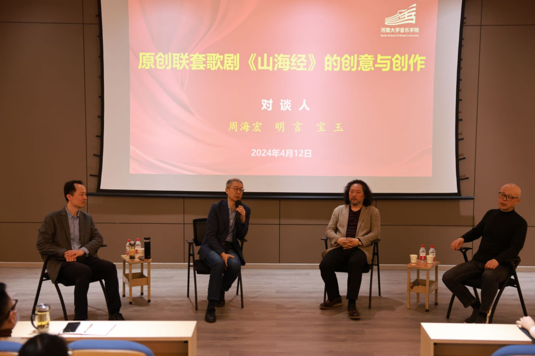 周海宏教授首先阐述了歌剧《山海经》的创作初衷和剧本建构,深入讲解了自己对于歌剧创作的心路历程。分享了如何从古籍中汲取精华,提炼出既符合歌剧艺术形式,又能展现中国传统文化魅力的故事主线。
