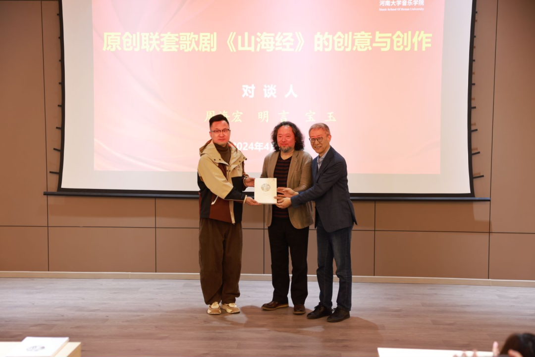 作曲家宝玉带领观众走进他的音乐世界,分享他在歌剧《山海经》创作中进行的音乐语言创新与探索。宝玉教授使用传统民族音乐元素与西方歌剧艺术形式相结合的方式,将自己细腻的音乐情感融入富有东方韵味又不失当代风格的音乐篇章。