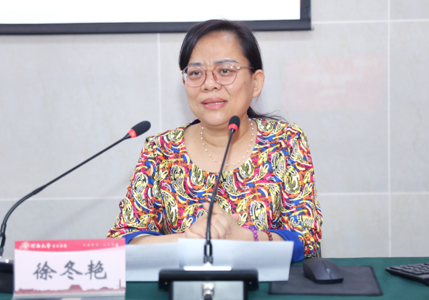 徐冬艳为大家讲解了本次培训的课程及管理安排,她叮嘱学员在培训期间要注意各项安全,增强时间观念,加强身份认同,在学习中反思交流,联合教学工作实际,为教学培训提出宝贵建议。