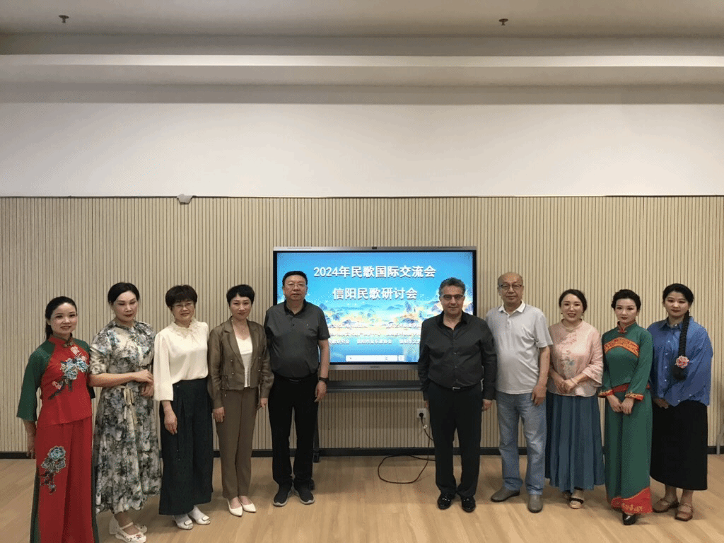 5月29日,Dell' Atti教授与bilibili下载 师生一行前往信阳开展音乐文化调研,在信阳艺术职业学院观看了“信阳原生态民歌专场暨民歌国际交流会”。Dell' Atti教授对儿童合唱团演唱的信阳民歌《对花》印象深刻,认为民歌传承应该从孩子们抓起。Caporaletti教授将信阳原生态名歌与“新光韵音乐”理论相结合,介绍了当下世界民族音乐的分类。音乐会结束后,各位专家在民歌国际交流座谈会上,对如何传承保护信阳民歌展开了热烈讨论。