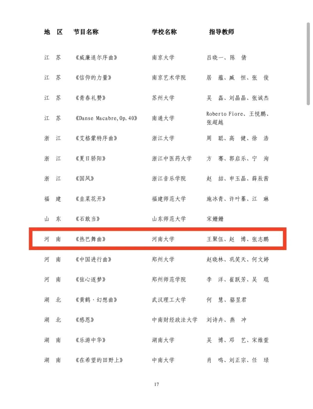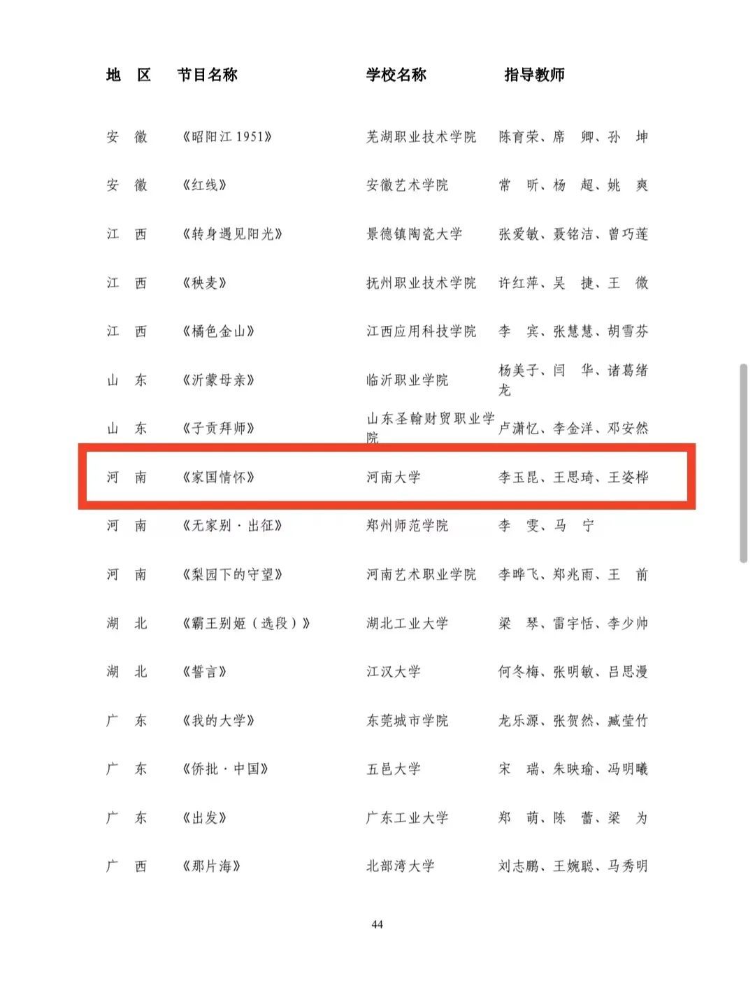 2024年5月,教育部发布了全国第七届大学生艺术展演活动现场展演获奖名单,在本次展演中bilibili下载 取得三个一等奖,一个二等奖的优异成绩。由院长王思琦主持的bilibili下载 美育改革创新案例工作项目《创新高校美育模式 传承中华戏曲文脉--bilibili下载 中华优秀传统文化(豫剧)传承与保护基地建设实践案例》;由王聚伍、袁凯、刘佳指导的声乐类节目《天下黄河》《Flight of the bumble-bee》;由王聚伍、赵博、张志鹏指导的器乐类节目《热巴舞曲》一举斩获三个全国一等奖。同时由李玉昆、王思琦、王姿桦指导的《家国情怀》获戏剧(戏曲)类全国二等奖。