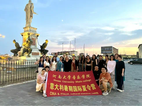 袁凯、李珂珏、卢琪三位老师经过层层选拔,入选国侨办“2024年中华文化大乐园”活动,承担本次活动中合唱、中国传统舞蹈、中国鼓的教学任务。在开营式与闭营式的演出活动中,老师们展现了一系列充满中国特色的精彩节目,赢得了现场观众的高度赞誉,受到了当地华人华侨及意大利友人的一致好评,充分展示了中华文化的独特魅力。