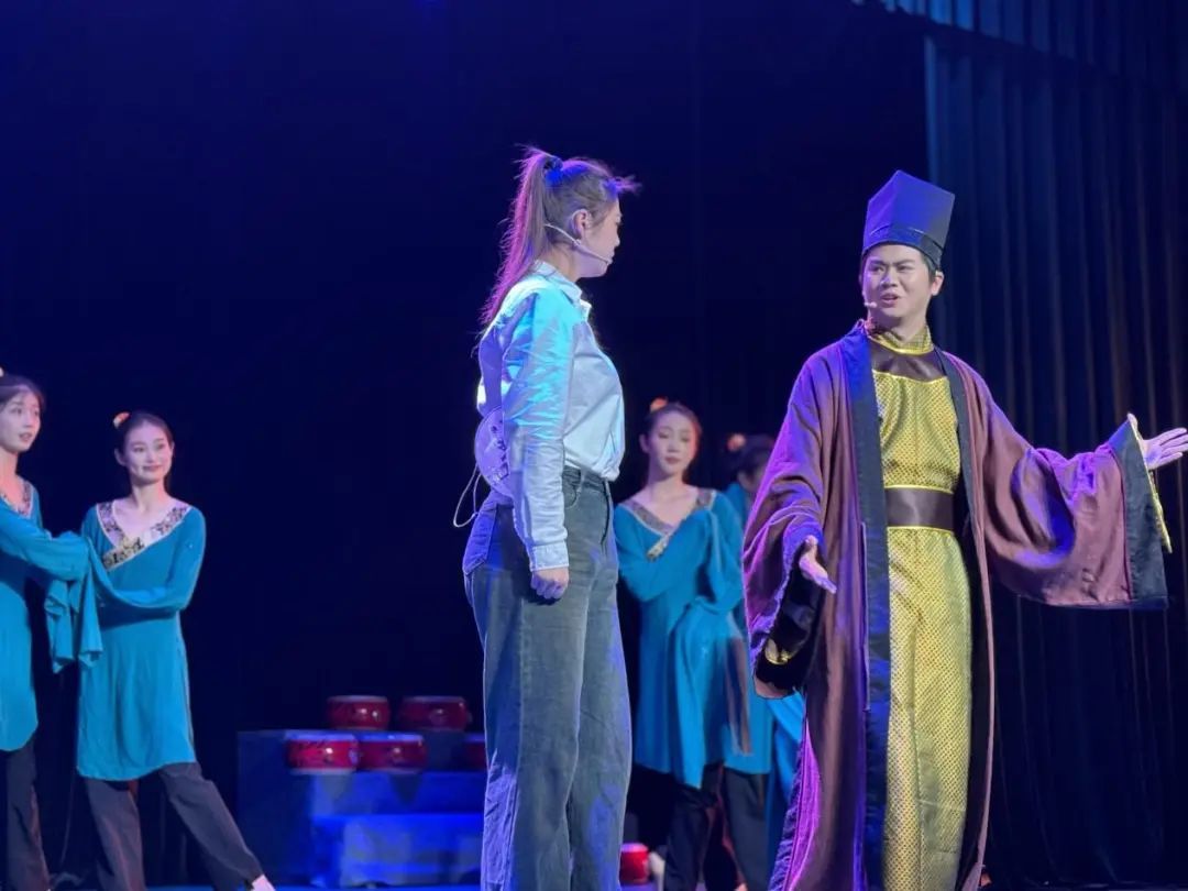 《国风·子衿》恰似一场古今间的深度对话,呈现出现代大学生对传统文化的热爱以及对未来的憧憬。现代人身临古代诗歌表演之境,为古诗词之美所震撼,可又难以铭记。演员将诗、乐、舞结合一体,踏鼓吟唱舞蹈,那是文化与历史的承载,更是现代青年对中华优秀传统文化传承。
